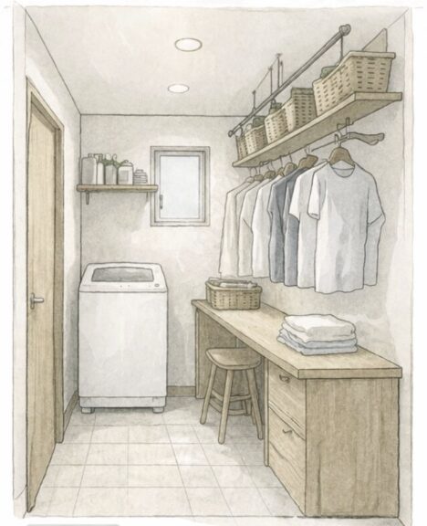 もし毎日洗濯するのであれば、小さなランドリールームでも対応可能かもしれません。