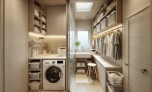 - スリムな洗濯機や乾燥機:コンパクトな家電を選ぶことで、周囲に余裕を作る。